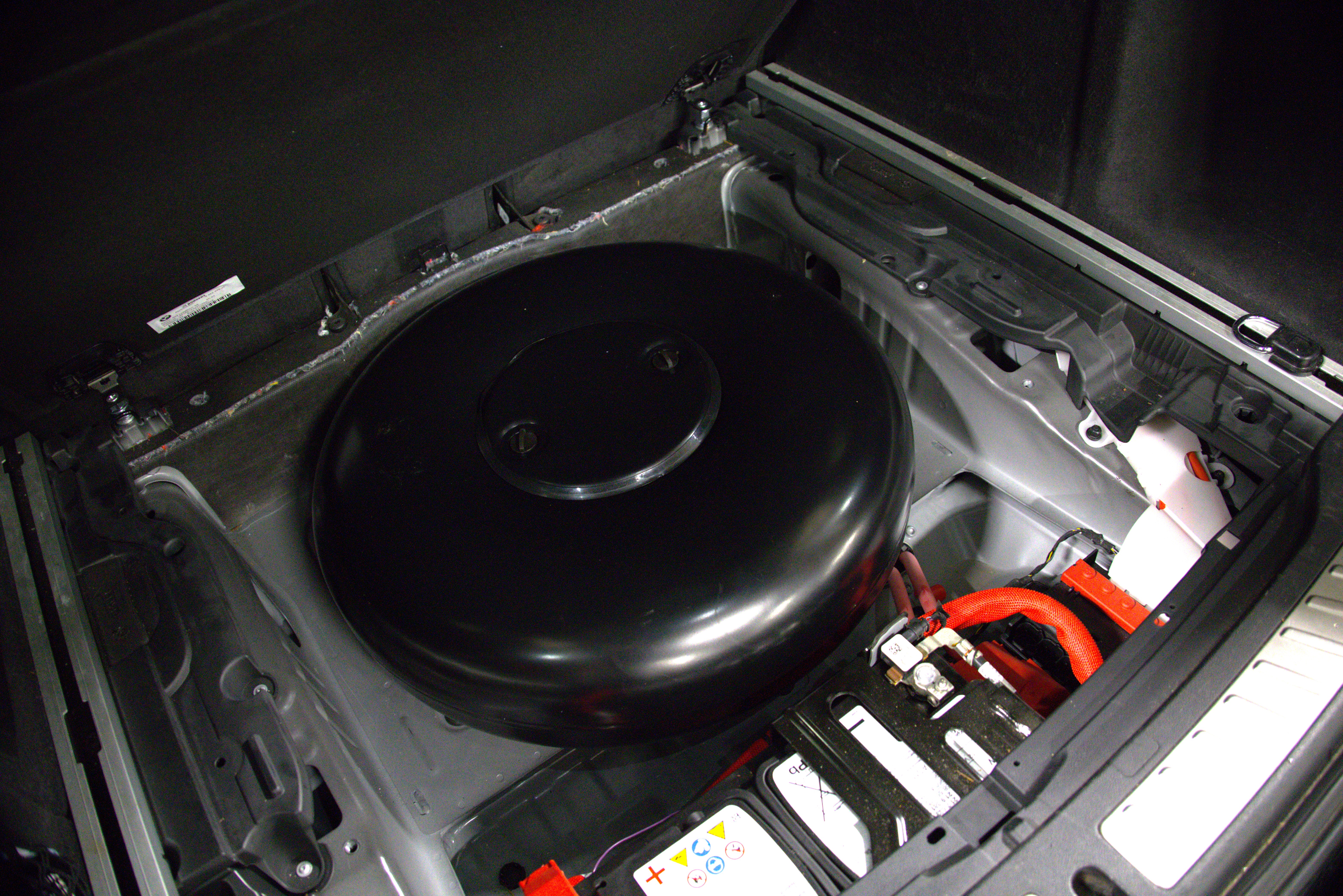 Przełącznik LED600 został dyskretnie zamontowany w schowku, a w bagażniku znalazł się toroidalny zbiornik 600/180 – 38 L brutto (30 L użytkowe), który nie ogranicza funkcjonalności przestrzeni.